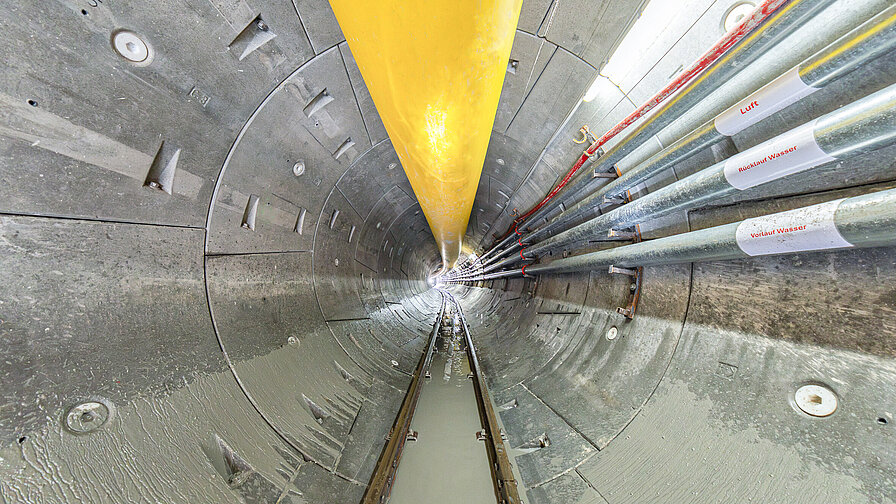Der Startschacht für die Bohrungen wurde am Gaudenzdorfer Gürtel erstellt. Von dort aus arbeitet sich seit März 2025 eine Tunnelvortriebsmaschine sukzessive durch den Untergrund. Im Nachgang können die vorproduzierten Tübbingringe aus Stahlbeton Stück für Stück versetzt werden.