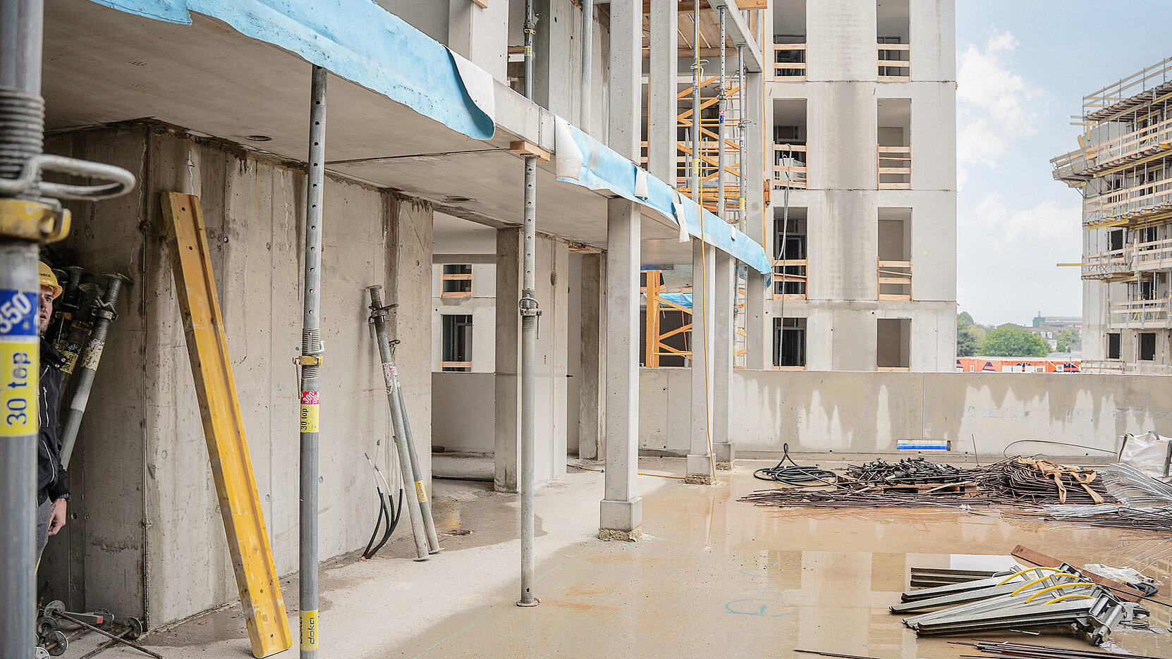 Einen wesentlichen Beitrag zur Realisierung des Projekts leistet die Firma Schöck mit ihren Lösungen nach dem TELLIGENT® Prinzip. Dieses unterstützt nicht nur eine besonders wirtschaftliche Bauweise und trägt somit direkt zur Schaffung von leistbarem Wohnraum bei, sondern fördert zugleich ein nachhaltiges und energieeffizientes Bauen. Konkret wurde bei diesem Bauvorhaben die Effizienz des Bauprozesses maßgeblich gesteigert: Die tragenden Säulen wurden bereits im Fertigteilwerk mit dem thermisch trennenden Bauteil Schöck Sconnex® P-U ausgestattet. Diese montagefertigen Elemente wurden direkt zur Baustelle geliefert und dort präzise und zeitsparend in den vorab betonierten Stützenfuß eingesetzt. Dieser hohe Grad an Vorfertigung beschleunigt nicht nur den Bauablauf erheblich, sondern sichert auch eine durchgängig hohe Qualität und minimiert Wärmebrücken – ein entscheidender Faktor für die Energieeffizienz des gesamten Gebäudes.