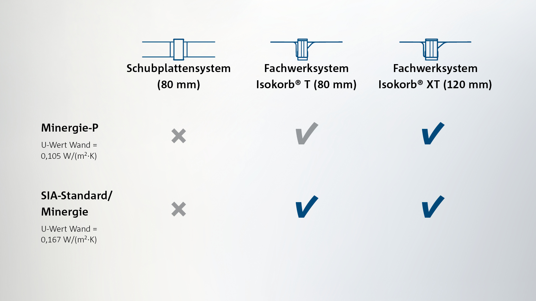 Statisch betrachtet weisen zahlreiche Kragplattenanschlüsse kaum noch Unterschiede auf. Die bauphysikalischen Werte der Kragplattenanschlüsse, die zum Erreichen der bauphysikalischen Anforderungen eines Gebäudes notwendig sind, weichen allerdings oft stark voneinander ab.