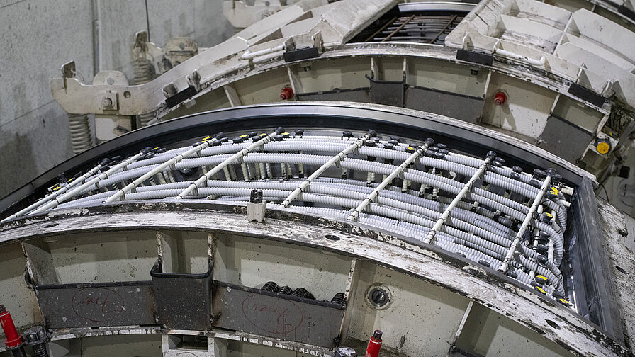 Der Startschacht für die Bohrungen wurde am Gaudenzdorfer Gürtel erstellt. Von dort aus arbeitet sich seit März 2025 eine Tunnelvortriebsmaschine sukzessive durch den Untergrund. Im Nachgang können die vorproduzierten Tübbingringe aus Stahlbeton Stück für Stück versetzt werden.