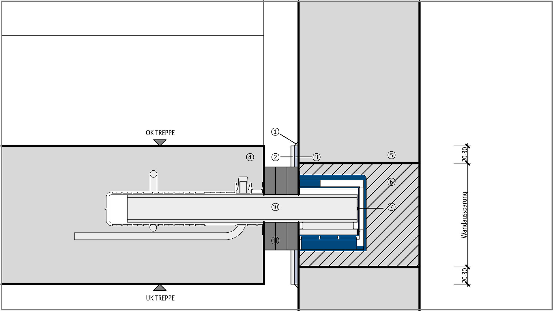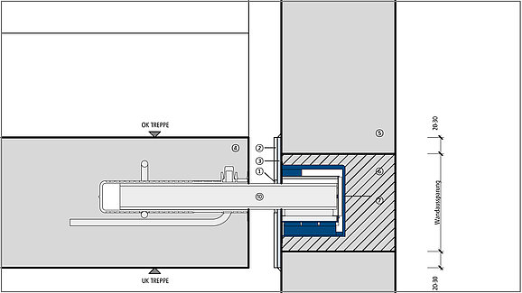 - Beim Einsatz der Schöck Tronsole® Typ Q innerhalb eines Sichtbetontreppenhauses kann die Anforderung bestehen, die Wandaussparung zu verkleiden, sodass sie für das Auge nicht mehr sichtbar ist.