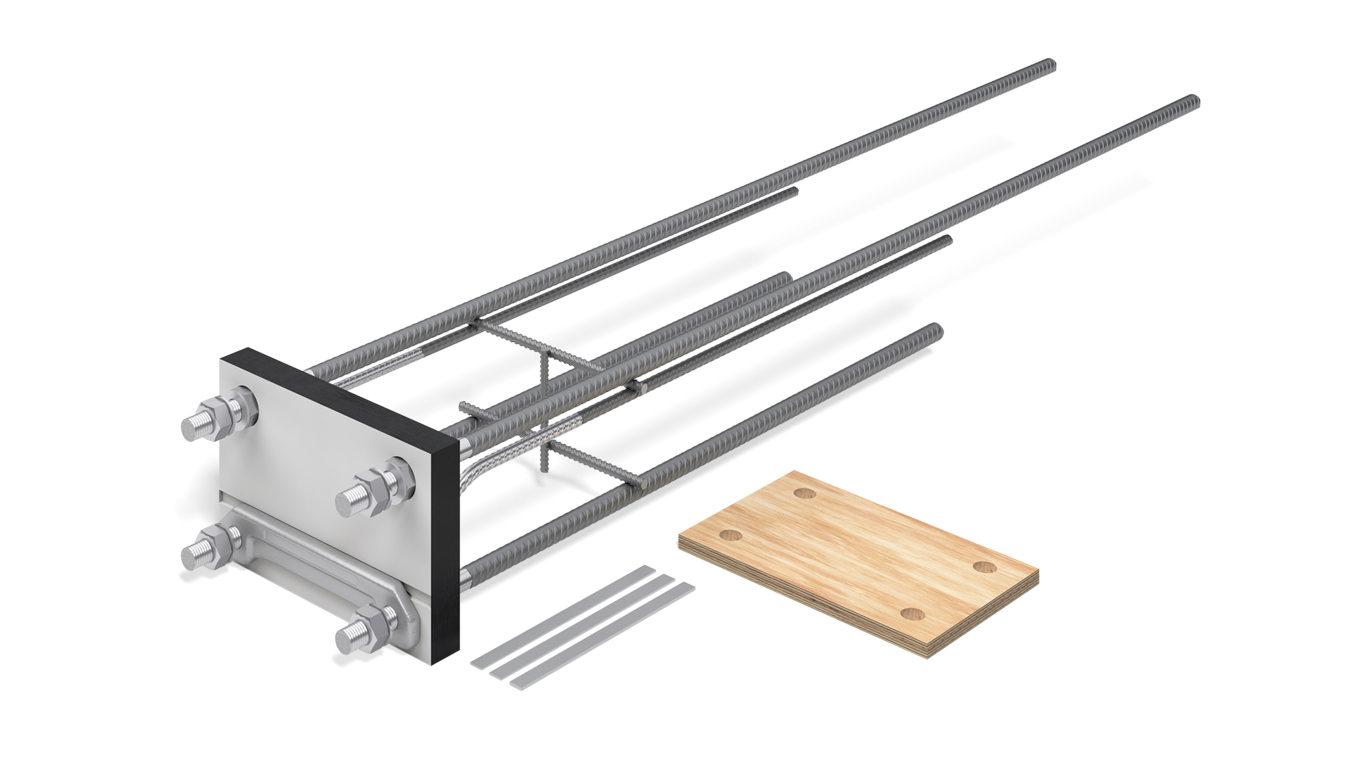 Load-bearing thermal insulation element for freely cantilevered steel structures with connection to reinforced concrete ceilings. The element transfers moments and shear forces