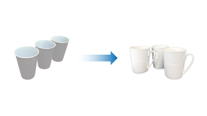 • Aus Umweltaspekten entschied man sich für eine Umstellung auf Keramiktassen, die immer wieder verwendet werden können.