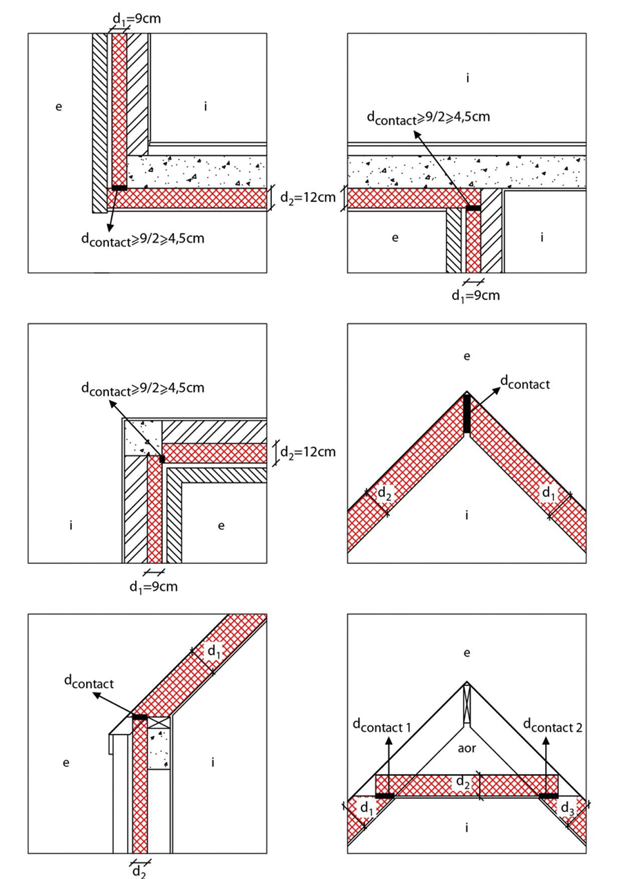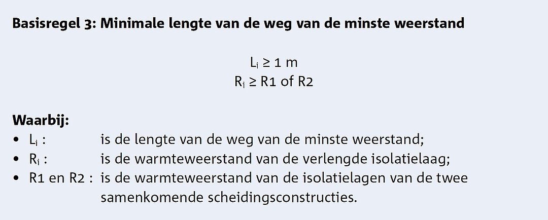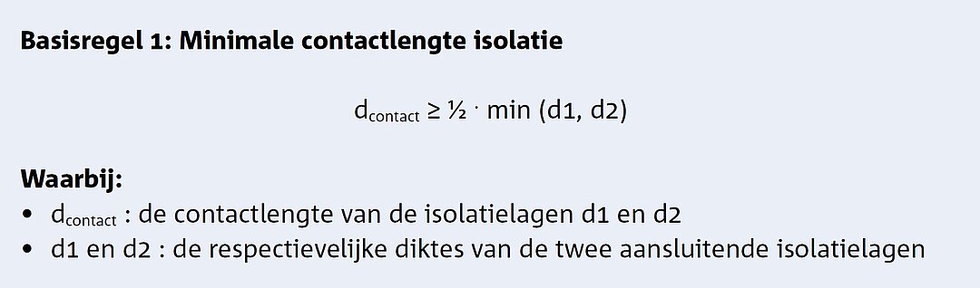 Deze regel eist dat de contactlengte dcontact nooit kleiner mag zijn dan de helft van de kleinste dikte van de isolatie van de samenkomende scheidingsconstructies.
