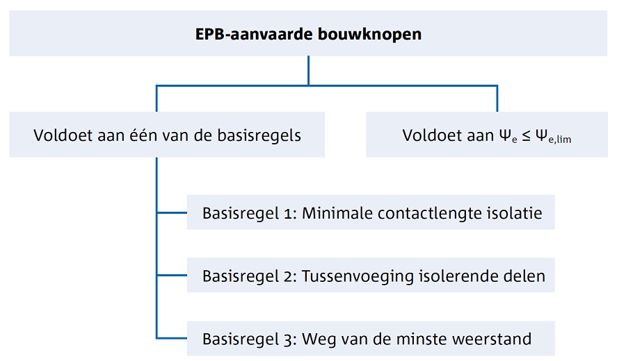Deze basisregels laten toe om op een eenvoudige en visuele wijze in te schatten of een bouwknoop al dan niet EPB-aanvaard is. Het rekenwerk wordt hierdoor sterk verminderd. Hierbij valt op te merken dat de bouwknoop enkel dient te voldoen aan één van de basisregels.
