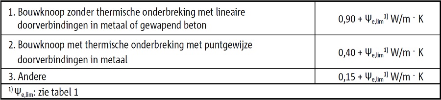 Een waarde bij ontstentenis voor een lineaire bouwknoop wordt uitgedrukt in functie van de overeenkomstige Ψe,lim-waarde uit voorgaande tabel. Bijkomstig wordt er een onderscheid gemaakt in de soort oplossing van de bouwknoop.
