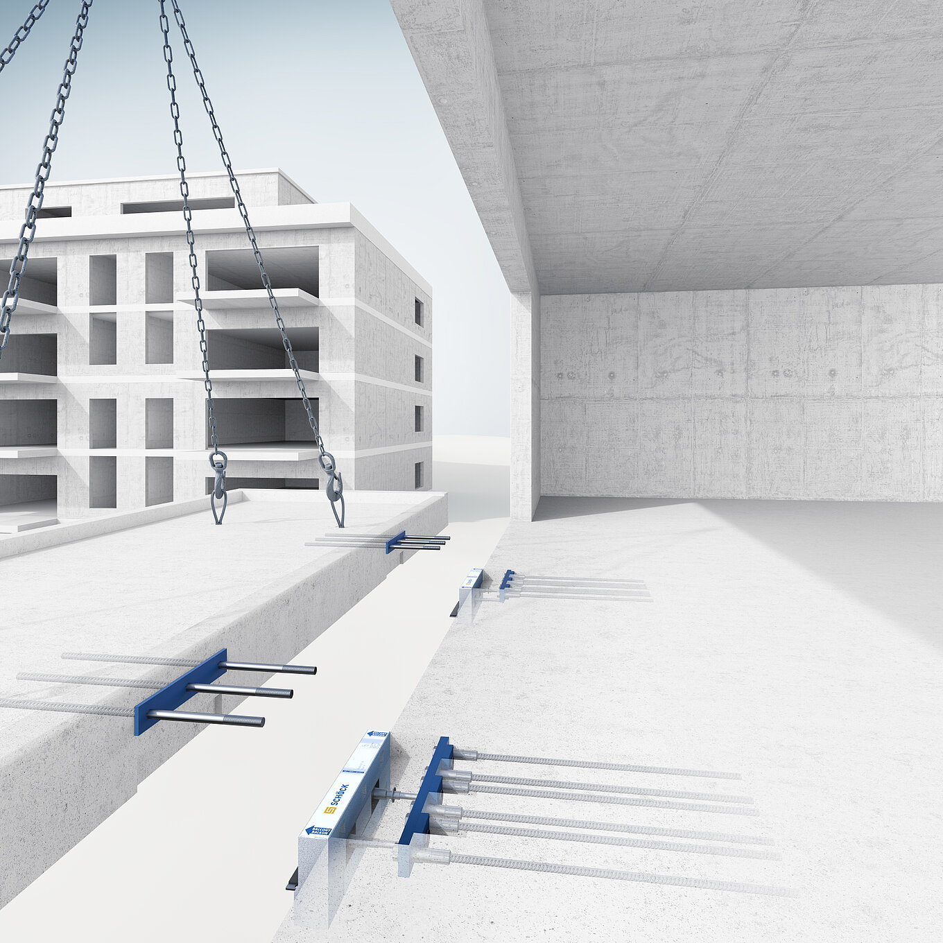 Alleen door een doorlopende thermische isolatie kan dit warmteverlies worden verminderd. Om dit te bereiken, worden thermische onderbrekingen zoals Schöck Isokorf® gebruikt. Schöck Isokorf® is daarbij niet alleen onderdeel van de thermische isolatie, maar ook onderdeel van de constructieve stabiliteit.